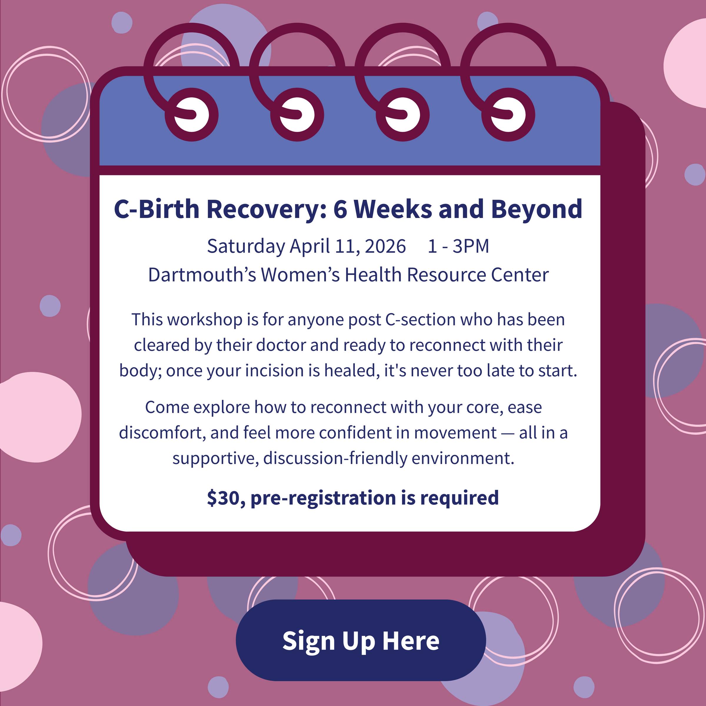 ​This page has a great interview and if you scroll down it has many resources linked! The first four sentences of the why behind the Cesarean Delivery Rehab Protocol hit me hard,